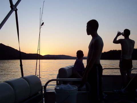 A first night’s welcoming fanfare, fireworks and music under the stars, aboard Brian’s pontoon.